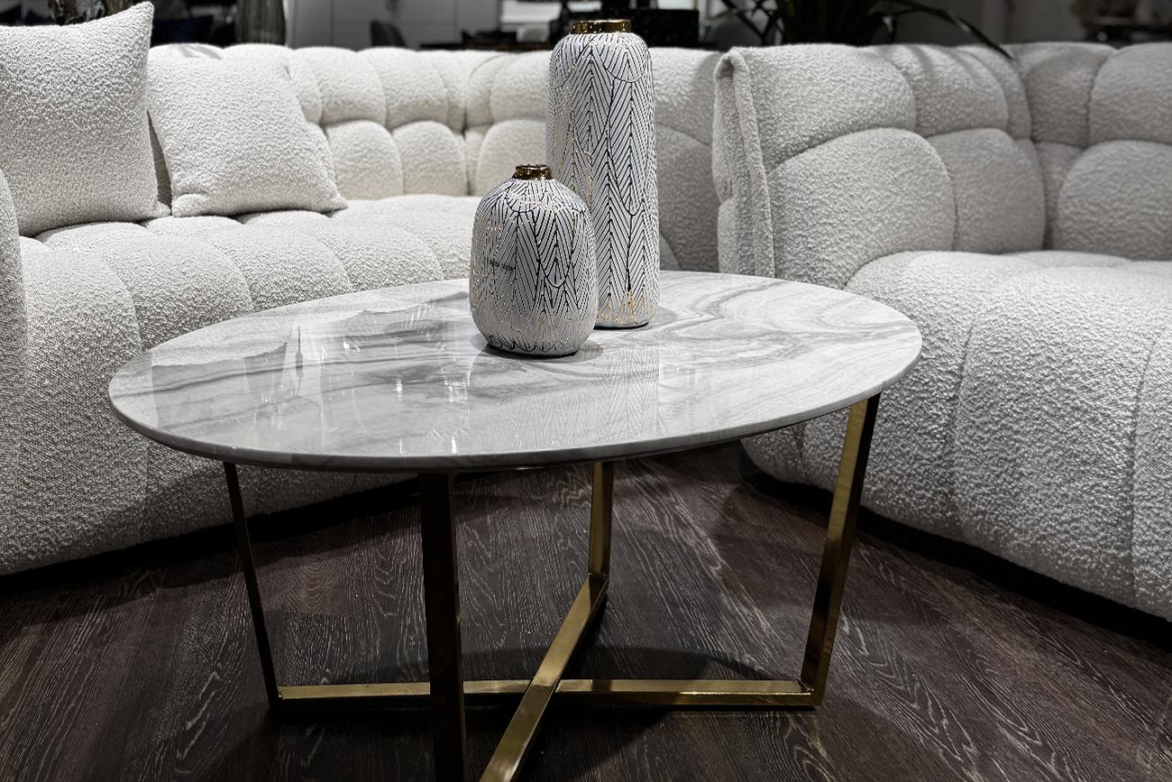 description-full - Выбирая мебель для гостиной, мы обычно предпочитаем эргономичные модели. То есть такие, которые обеспечивают передвижение по комнате без помех. Чем примечателен этот овальный журнальный стол? Благодаря удобной форме его можно использовать даже в малогабаритных помещениях – он не займет много места. Удачным вариантом станет такой журнальный стол для гостиной. Благодаря имитации под мрамор предмет смотрится стильно, роскошно, эстетически привлекательно. Модели из этой серии можно посмотреть на сайте в каталоге журнальных столов. Толщина столешницы - 20мм. Модель данной серии сочетается со столом 30B-855-2D.