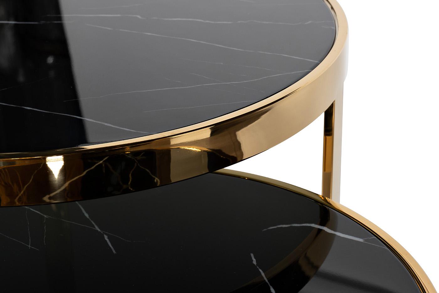 Стол журнальный Garda Decor 47ED-ET081S-GOLD Столы (наб 2шт) стекло чер.мрам/зол d60*60/d46*50 арт. 47ED-ET081S-GOLD