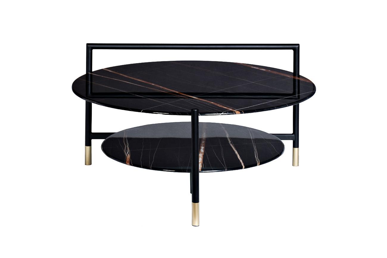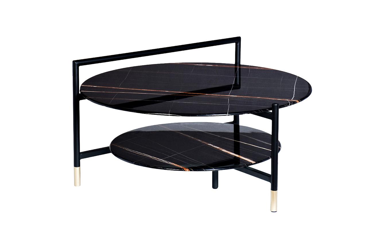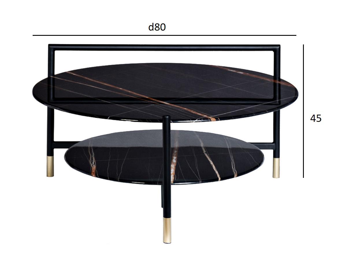 description-full - Круглый журнальный столик просто незаменим в любом интерьере. Столешница из прочного закаленного стекла искусно имитирует темный мрамор с яркими цветными прожилками. С такой красивой мебелью оживает любой интерьер. Удобная ручка на столешнице позволяет легко передвинуть стол в нужное место. Изящные золотые наконечники на ножках хорошо сочетаются с темными столешницами, придавая столу особый блеск и красоту. Широкий журнальный столик с полкой – удобный и функциональный предмет мебели, который прекрасно подойдет для гостиной, столовой, спальни или кабинета. Толщина столешниц 8мм. Сочетается с журнальным столом 30B-871 BL из данной серии.
