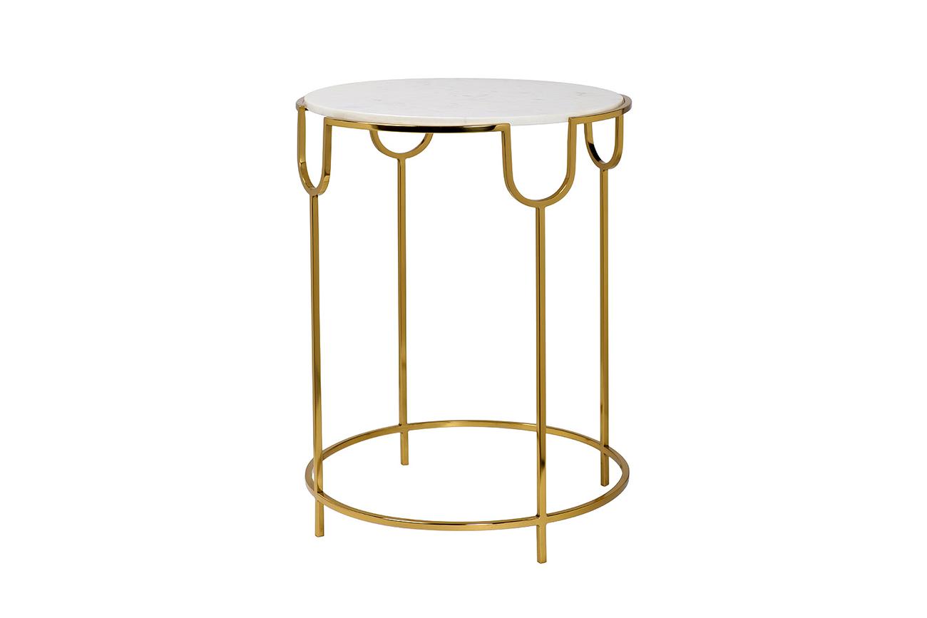 description-full - Этот круглый журнальный столик – гармоничное сочетание элегантной столешницы из белого натурального мрамора и металлического корпуса с золотым блеском. Эта мебель может стать главным акцентом в помещении или занять нейтральное место, «молча» выполняя свою основную функцию. Дизайнерский журнальный столик с мраморной столешницей – отличный выбор для интерьеров с акцентом на статус. Благодаря компактным размерам он прекрасно впишется в интерьер гостиной, спальни и даже прихожей, где сможет выполнять задачи консоли для хранения ключей и аксессуаров. Вы можете купить металлический журнальный столик с доставкой и дополнить его мебелью и декором из нашего каталога.