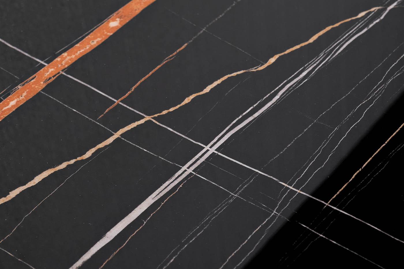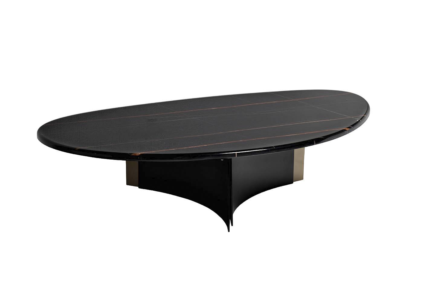description-full - Дизайнерский журнальный стол в современном стиле – эксклюзивная мебель, которая добавляет обстановке гостиной особенного изящества, подчеркивает статус интерьера. Столешница из МДФ с имитацией под мрамор является главной фишкой этой мебели. За устойчивость и визуальную легкость отвечает основание из металла с эффектом черного зеркала. Журнальный черный стол эффектно смотрится в интерьерах ар-деко, фьюжн, авангард, неоклассика, минимализм, сочетается с диваном, креслами и другими предметами современной обстановки. Низкий журнальный стол – стильный современный тренд, дизайнерское решение для вашей обстановки.