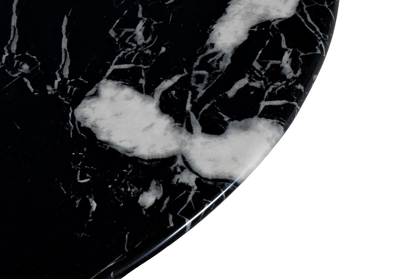 description-full - Изысканный журнальный столик с круглой столешницей, выполненной из искусственного мрамора черного цвета с белыми прожилками, станет украшением гостиной или холла, оформленного в стиле ар-деко или неоклассика. Уникальный рисунок натурального камня, подобранный искусным мастером, притягивает взгляд игрой цвета и света, превращая этот предмет мебели в настоящее произведение искусства. Оригинальное основание столика цвета бежевый металлик, выполненное из нержавеющей стали, создает ощущение легкости и придает изделию утонченный вид. Эта модель стола исполнена из искусственного черно-белого мрамора (камень с полимерным покрытием). Основание из гнутых листов нерж.стали цвета бежевый металлик. Толщина столешницы: 18мм Сочетается с журнальным столом 57EL-10310