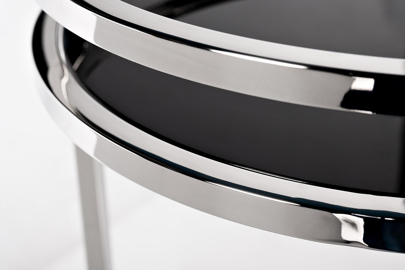 Материал - основание - нерж.сталь, цвет хром; столешница - стекло черное