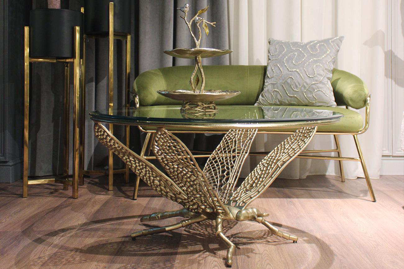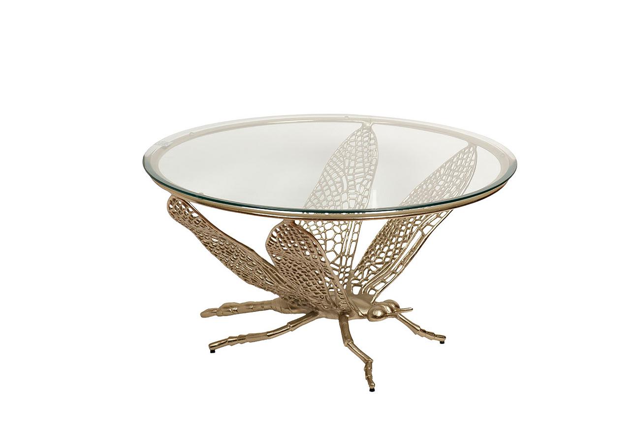 description-full - Удивительный дизайнерский стол в стиле ар-деко сделает вашу спальную комнату, гостиную или холл единственными в своем роде! Изящная стрекоза из золотистого металла подпирает крыльями столешницу из прозрачного закаленного стекла. Этот стол ручной работы подойдет артистичным и утонченным натурам, станет невероятным и изысканным подарком дорогому человеку, впишется в интерьер в современном стиле, стиле ар-деко или фьюжн. Толщина столешницы: 10мм