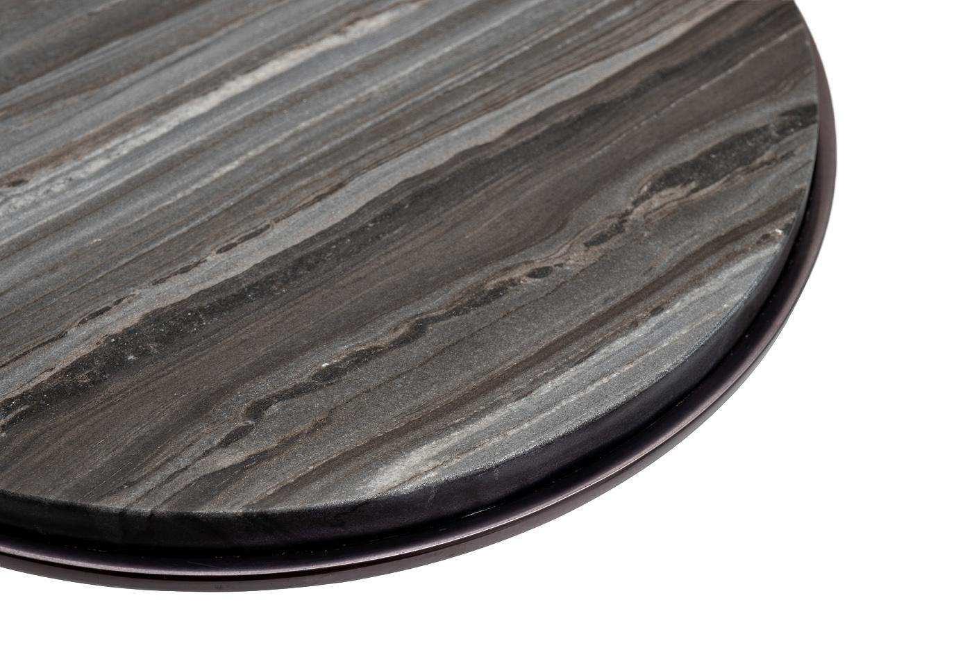 description-full - Мраморный журнальный столик благородного черного цвета займет достойное место в гостиной и будет эффектно смотреться в современных лаконичных интерьерах. Журнальный маленький круглый столик выполнен из мрамора и алюминия. За счет расширяющегося к низу основания он устойчивый и надежно стоит на любой поверхности. Благодаря компактным размерам черный журнальный столик может играть роль подставки для кашпо с цветами или использоваться в качестве прикроватной тумбочки в спальне. Ему также найдется место в прихожей, холле, рабочем кабинете. Это удобная и функциональная мебель премиального качества, которая легко вписывается в любую жилую обстановку. Толщина столешницы: 16мм