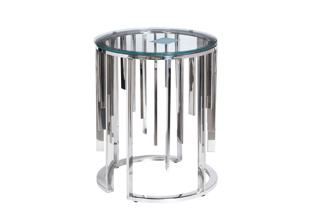 description-full - Оригинальный журнальный столик – пример удачного сочетания простых форм и смелой дизайнерской мысли. Обычная нержавеющая сталь и прозрачное ударопрочное стекло составили стильный тандем. Этот хромированный журнальный столик выглядит интересно и необычно, но при этом хорошо справляется со своей основной задачей. Он является стильным акцентом в интерьере и дополняет собой уютную обстановку гостиной или любой другой комнаты. На сайте Garda Decor можно купить эксклюзивный журнальный столик со стеклом премиального качества, а также другую мебель и декор для оформления статусных интерьеров. На сайте представлен стол данной серии в большем размере арт. 13RXCT8077-SILVER.