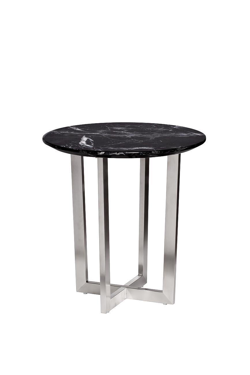 description-full - Изящный журнальный столик со столешницей из МДФ с мраморным принтом черного цвета с белыми прожилками и основанием из нержавеющей стали цвета матовый хром будет уместен как в холле или прихожей, так и в гостиной комнате. На него можно класть прессу или корреспонденцию, ключи и перчатки, сумочки и шкатулки, либо поставить красивую вазу с цветами - столик всегда будет выглядеть элегантно и современно, дополняя и украшая интерьер. Толщина столешницы - 25мм. Журнальный стол прекрасно сочетается с обеденным столом арт. 33FS-DT19F335-BS и столиком арт. 33FS-CT2029-BS.