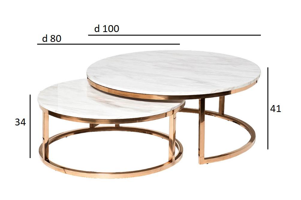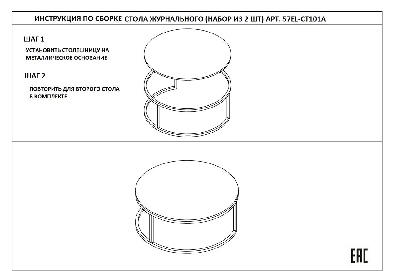 description-full - Комплект журнальных столов для гостиной – удачный выбор для посиделок с друзьями или семьей. Предметы сделаны по принципу матрешек. Эти круглые журнальные столы немного различаются размерами. В результате один из них удобно задвигается под другой, экономя пространство. При необходимости столики можно раздвинуть, если у вас намечаются гости. Такой набор журнальных столов выглядит необычайно стильно и презентабельно. Мебель выполнена со вкусом, отвечает современным требованиям качества. В состав входит нержавеющая сталь и искусственный мрамор. Высокое качество материалов обуславливает длительную эксплуатацию предметов интерьера без потери их качеств. Размеры столов - 100х100х41, 80х80х34см. Столики в таком же дизайне, но в меньшем размере - арт. 57EL-ET101В.