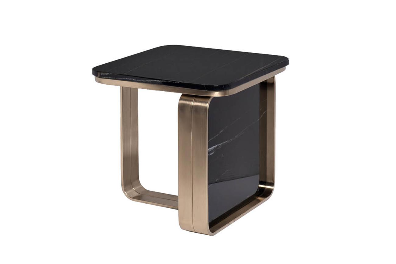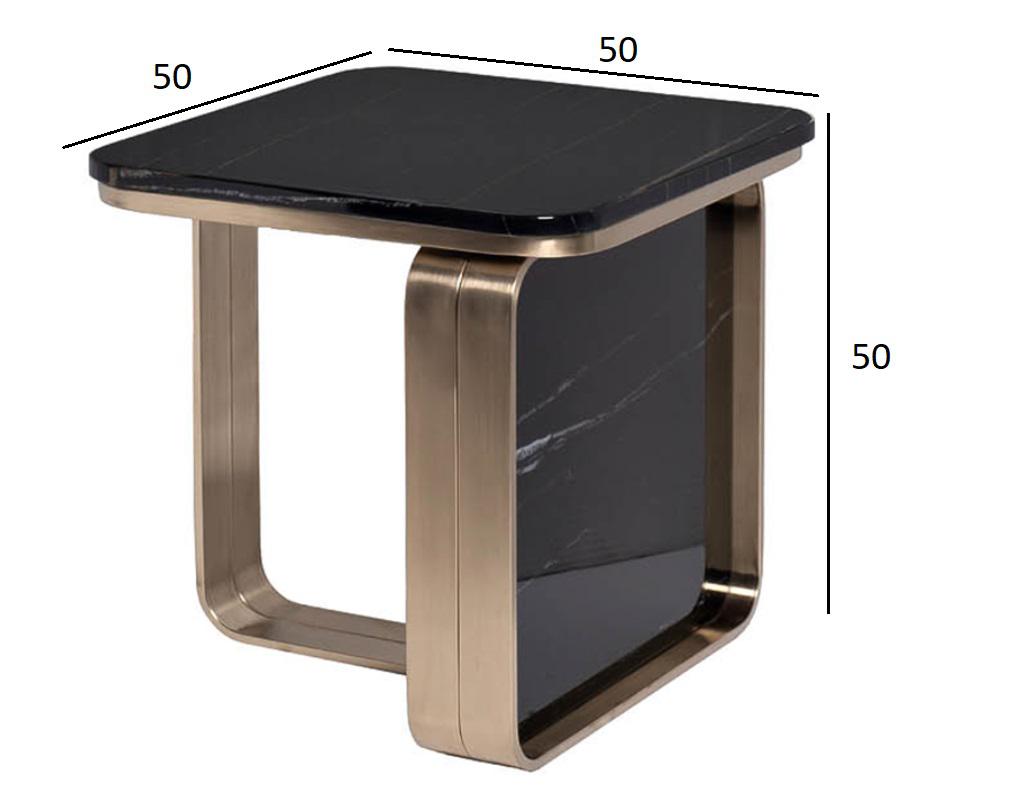 Стол журнальный Garda Decor 76AR-3183-STOL/ZH Стол журнальный иск. камень черный / золото 50*50*50см арт. 76AR-3183-STOL/ZH
