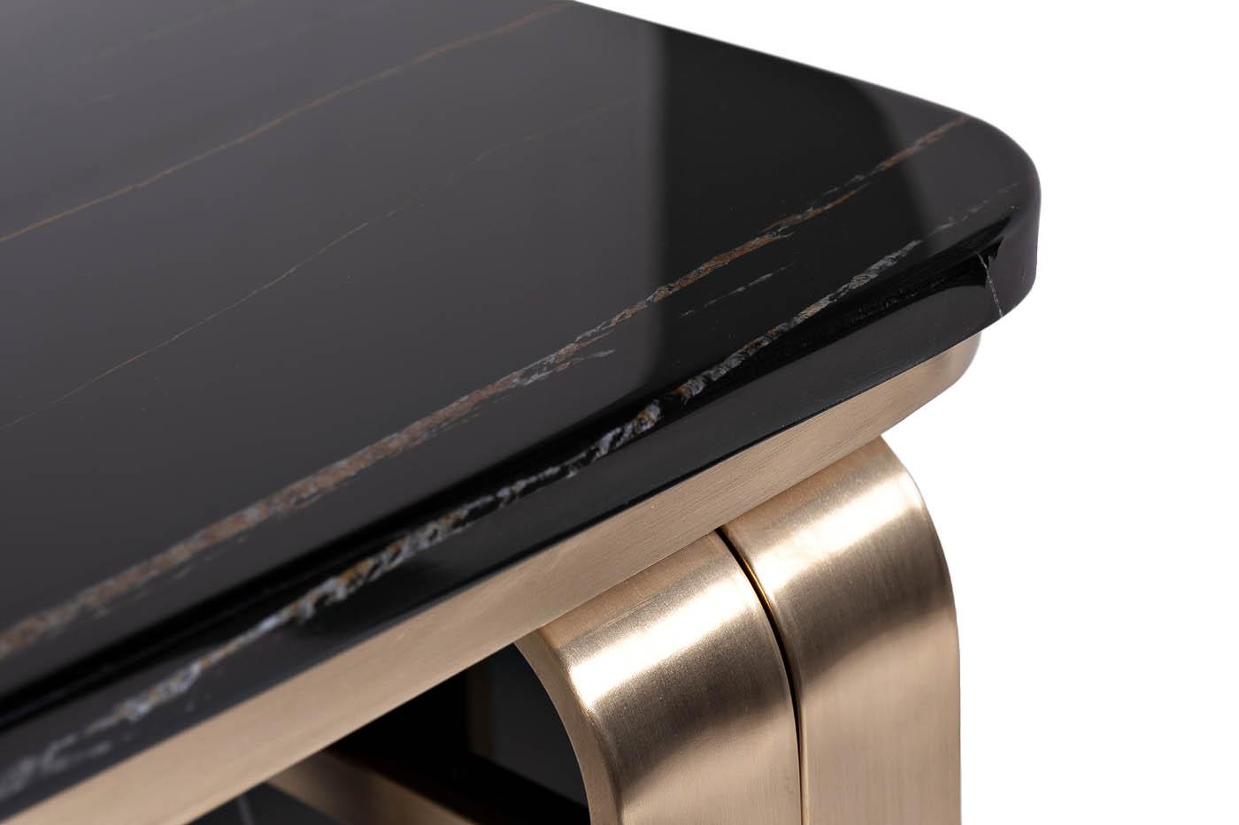 description-full - Черный журнальный столик – эксклюзивный предмет интерьера, который привнесет в обстановку нотку шика и элегантности. Фишка этой модели в том, что столешница и одна боковая часть выполнены из искусственного камня с красивой глянцевой поверхностью. Элегантный журнальный столик под мрамор украсит собой гостиную, оформленную в стилистике ар-деко, фьюжн, неоклассика, минимализм. Он эффектно дополняет мягкую мебель и легко сочетается с другими предметами обстановки. Современный журнальный столик выполнен из материалов премиум качества, может стать украшением вашего дома или подарком близкому человеку. Толщина столешницы - 18мм.