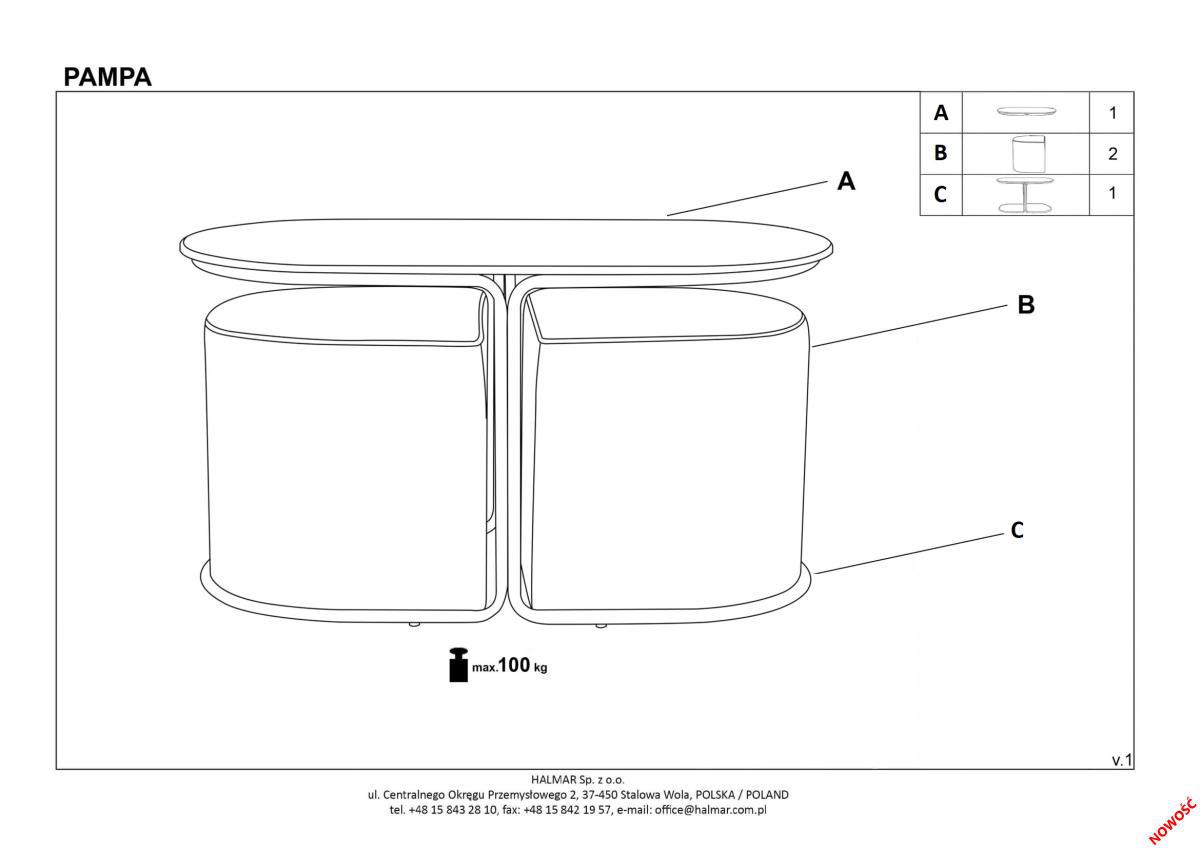 Стол журнальный Halmar Комплект Halmar PAMPA, стол журнальный + 2 пуфа (орех/черный, серый) арт. V-CH-PAMPA-LAW