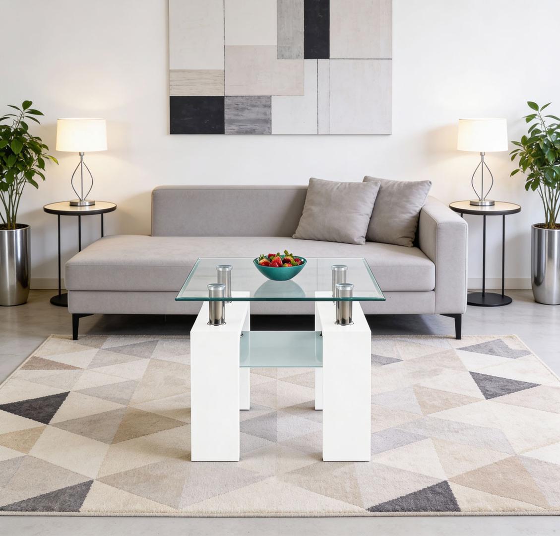 Вес, кг: 19,9 / Высота (см): 55 / Гарантия, мес.: 12 / Глубина (см): 60 / Количество коробок: 2 / Материал каркаса: МДФ / Материал столешницы: стекло / Необходимость сборки: да / Раздвижной: нет / Размер упаковки 1: 0,66/0,66/0,05 / Размер упаковки 2: 0,55/0,52/0,08 / Страна производитель: Китай / Форма столешницы: квадрат / Цвет каркаса: белый / Цвет столешницы: прозрачный / Ширина (см): 60