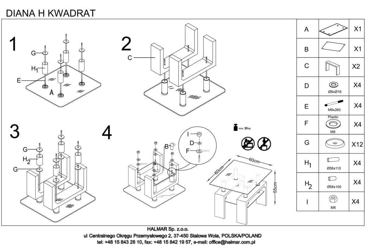 Стол журнальный Halmar Стол журнальный Halmar DIANA H KWADRAT (белый) арт. V-CH-DIANA_KWADRAT_H-LAW-LAK-BIALY