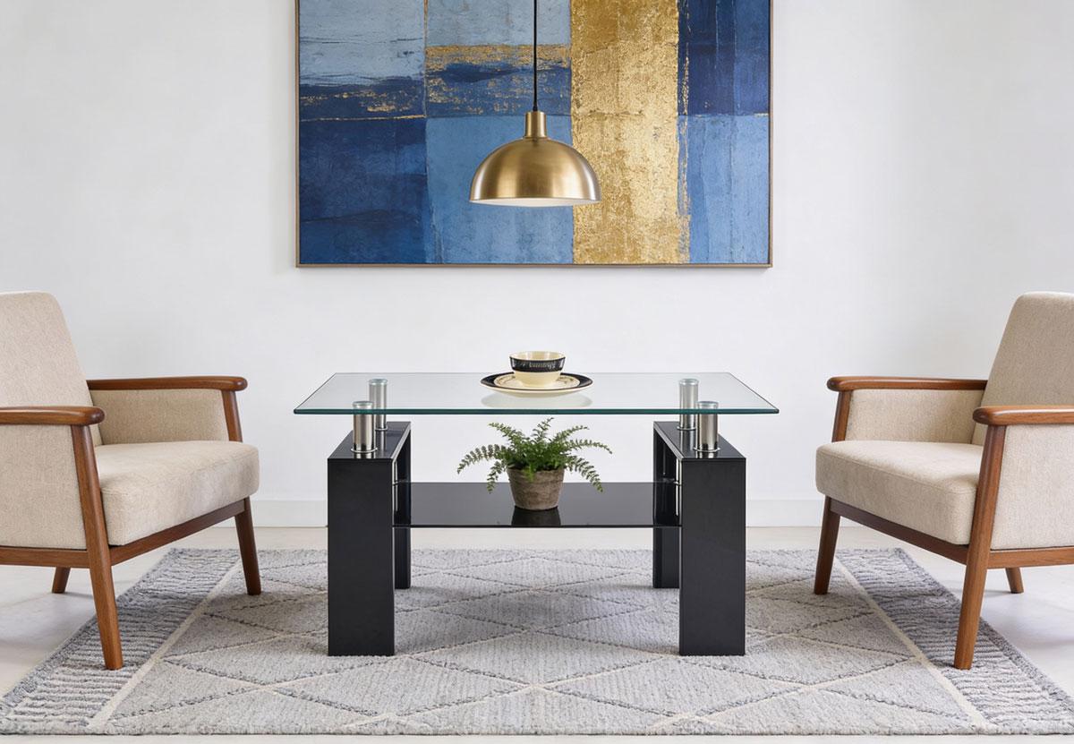Вес, кг: 30,1 / Высота (см): 55 / Гарантия, мес.: 12 / Глубина (см): 60 / Количество коробок: 2 / Материал каркаса: МДФ / Материал столешницы: стекло / Необходимость сборки: да / Раздвижной: нет / Размер упаковки 1: 1,15/0,65/0,05 / Размер упаковки 2: 0,66/0,5/0,18 / Страна производитель: Китай / Форма столешницы: прямоугольник / Цвет каркаса: черный / Цвет столешницы: прозрачный / Ширина (см): 110