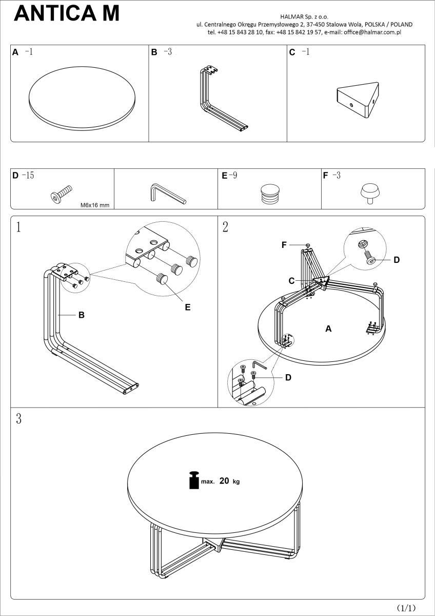 Стол журнальный Halmar Стол журнальный Halmar ANTICA M (белый мрамор/черный) арт. V-CH-ANTICA-M-LAW