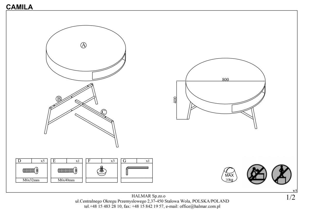 Стол журнальный Halmar Стол журнальный Halmar CAMILA (дуб золотой/черный) арт. V-CH-CAMILA-LAW