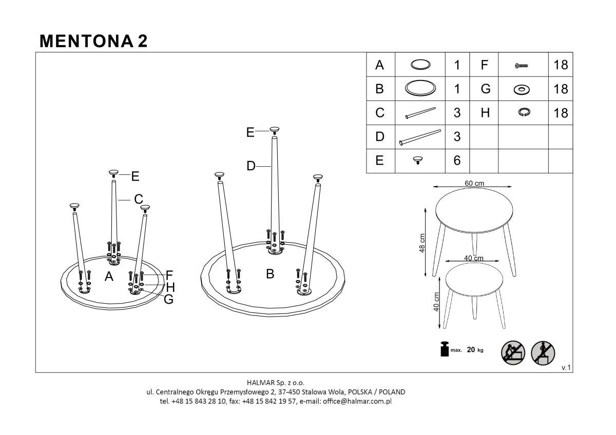 Вес, кг: 9 / Высота (см): 48 / Высота 2-о товара в комплекте (см): 41 / Гарантия, мес.: 12 / Глубина (см): 59 / Глубина 2-о товара в комплекте (см): 40 / Количество коробок: 2 / Материал каркаса: металл / Материал столешницы: МДФ / Необходимость сборки: да / Раздвижной: нет / Размер упаковки 1: 0,66/0,07/0,66 / Размер упаковки 2: 0,57/0,19/0,09 / Страна производитель: Китай / Форма столешницы: круг / Цвет каркаса: черный / Цвет столешницы: коричневый / Ширина (см): 59 / Ширина 2-о товара в комплекте (см): 40