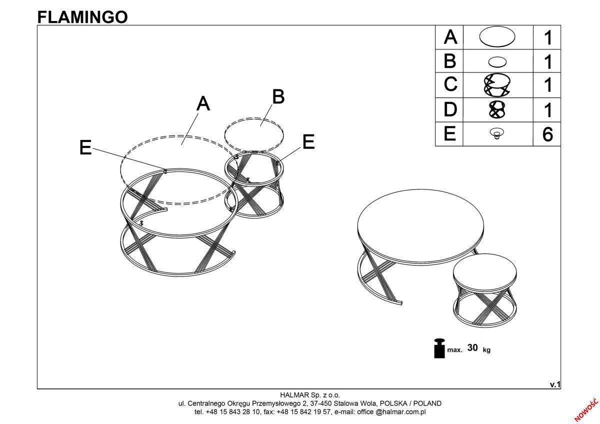 Стол журнальный Halmar Комплект Halmar FLAMINGO, 2 стола журнальных (серый мрамор/черный) арт. V-CH-FLAMINGO-LAW-POPIEL