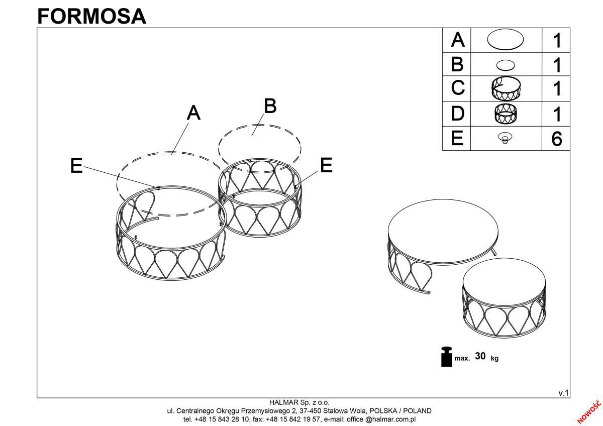 Стол журнальный Halmar Комплект Halmar FORMOSA, 2 стола журнальных (белый мрамор/черный) арт. V-CH-FORMOSA-LAW
