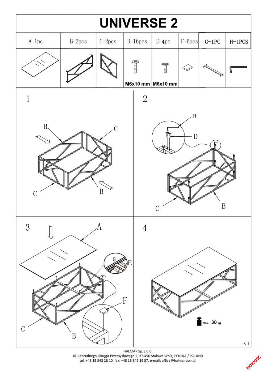 Стол журнальный Halmar Стол журнальный Halmar UNIVERSE 2 (серый мрамор/черный) арт. V-CH-UNIVERSE_2-LAW