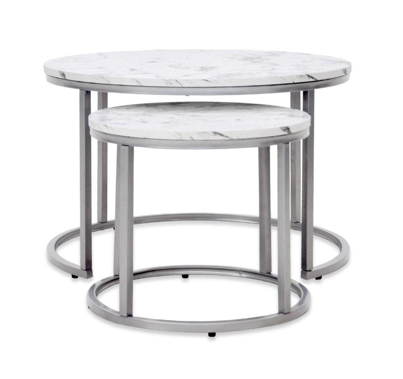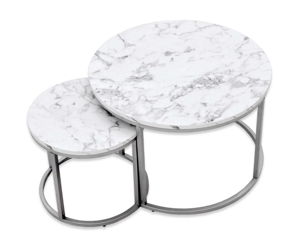 Стол журнальный Halmar Комплект Halmar PAOLA 2 стола журнальных (белый мрамор/серебристый) арт. V-CH-PAOLA-LAW-SREBRNY