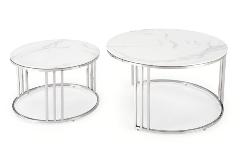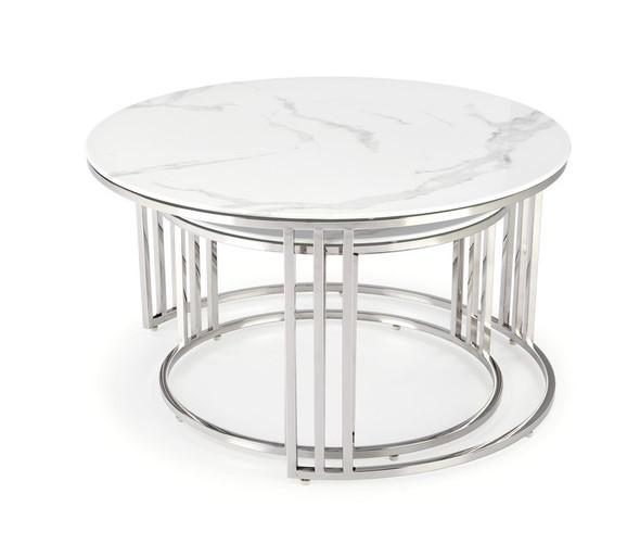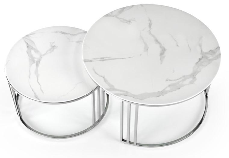 Стол журнальный Halmar Комплект Halmar MERCURY 2, 2 стола журнальных (серебристый/белый мрамор) арт. V-CH-MERCURY_2-LAW