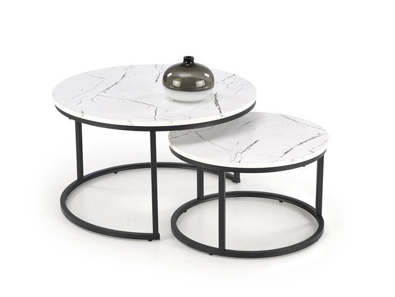 Стол журнальный Halmar Комплект Halmar JAVA, 2 стола журнальных (белый мрамор/черный) арт. V-CH-JAVA-LAW-BIALY