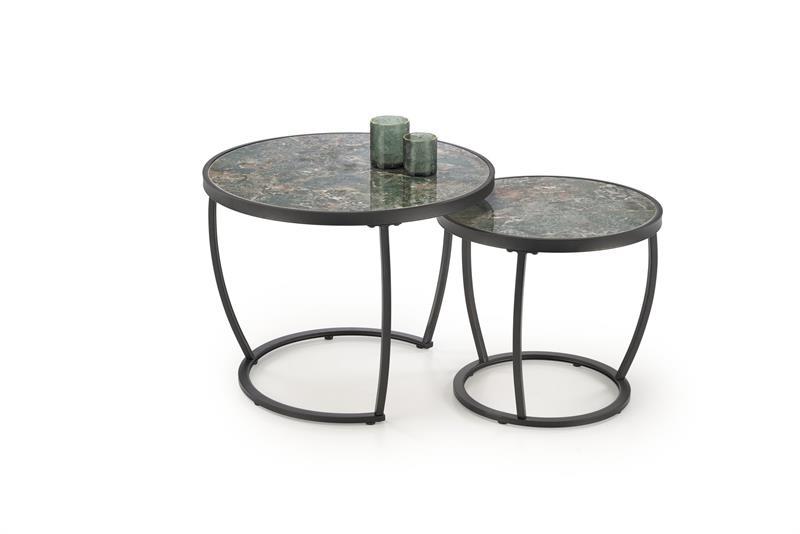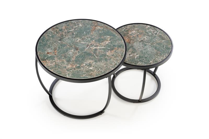 Стол журнальный Halmar Комплект Halmar INES, 2 стола журнальных (зеленый мрамор/черный) арт. V-CH-INES-LAW-ZIELONY