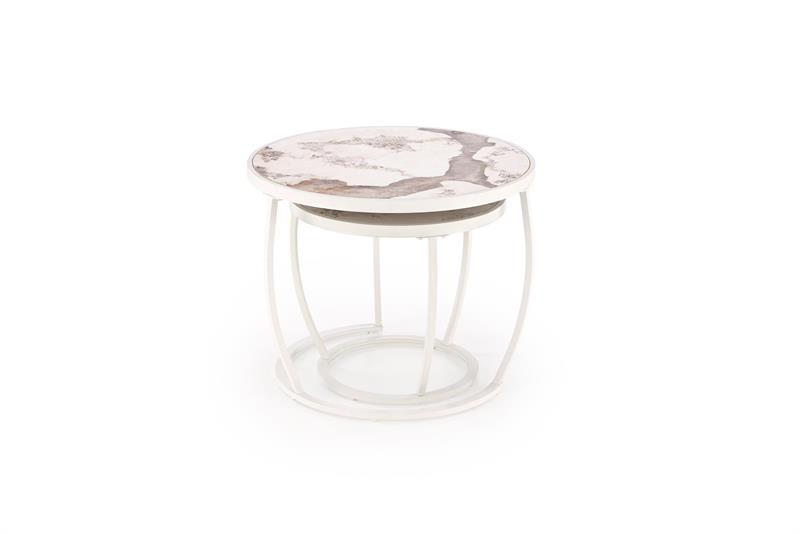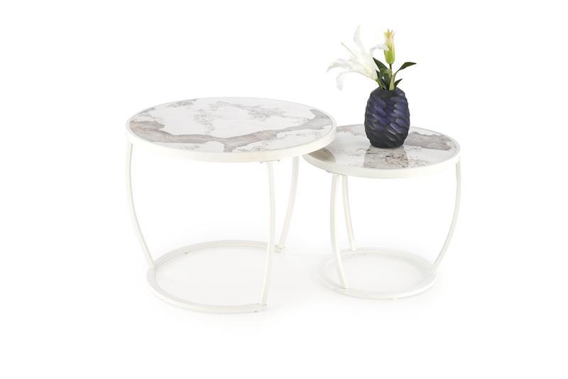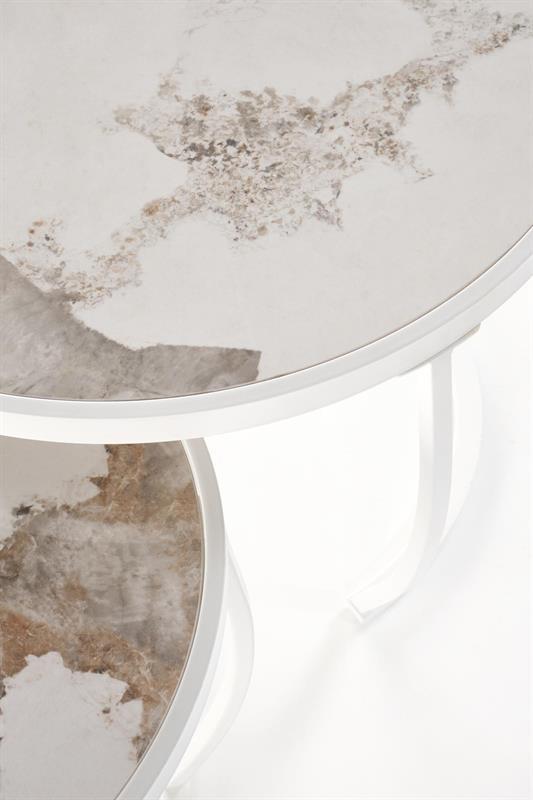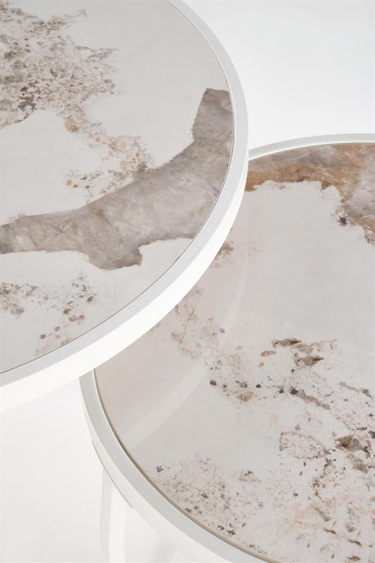 Стол журнальный Halmar Комплект Halmar INES, 2 стола журнальных (бежевый мрамор/белый) арт. V-CH-INES-LAW-BEZOWY