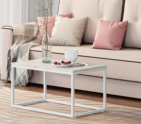 Стол журнальный LoftyHome Стол журнальный Мальборк Классик Мрамор Сноу с белым основанием лофт арт. 1251777