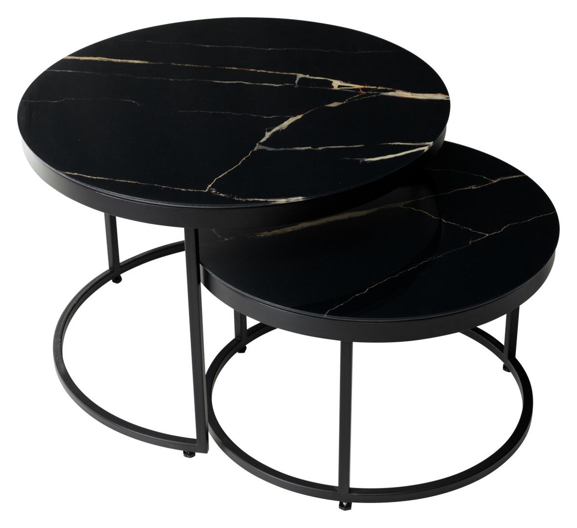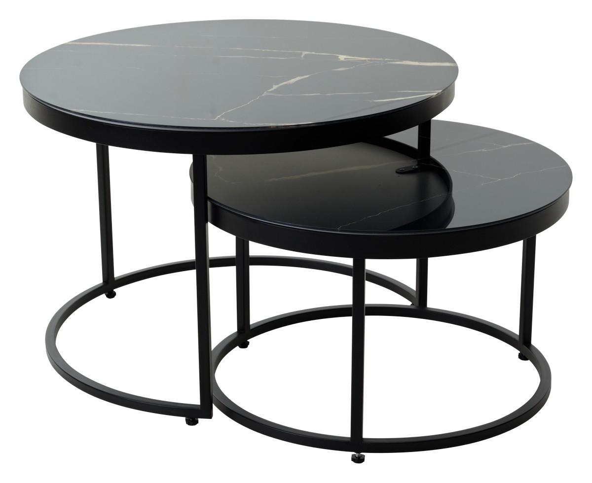 Комплект журнальных столиков Эрвин обсидиан, стекло/ черный