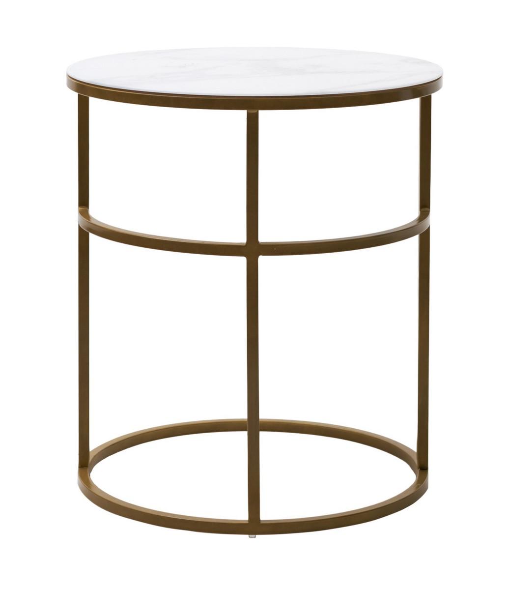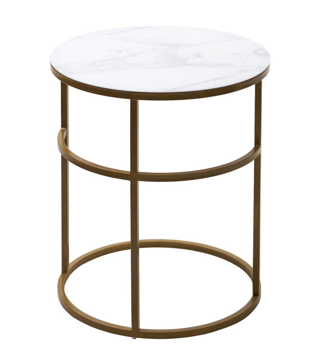 Стол журнальный М-СИТИ Журнальный столик Френсис Белый мрамор, стекло/ золотой каркас арт. 480M05155