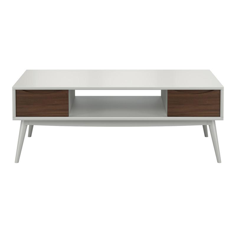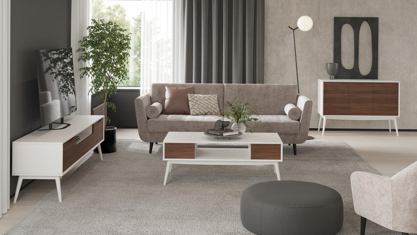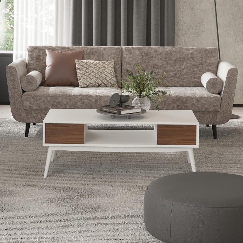 Журнальный стол из коллекции Sevilla от MOD Interiors — актуальный вариант современного дизайна. Его элегантный силуэт, выполненный из качественного шпона американского ореха в комбинации со светло-серым матовым лаком, придает пространству легкость и воздушность. Корпус стола выполнен из высококачественного МДФ высокой прочности, ножки из массива дерева. Отделка корпуса и ножек - матовый лак светло-серого оттенка. Отделка фасадов ящиков - натуральный шпон ореха. Модель с 2 выдвижными ящиками и открытой нишей для хранения. Ящики снабжены направляющими системы soft-close. Уникальная система последнего поколения добавляет плавность открывания/закрывания. Чистые линии и гармоничные пропорции делают этот стол универсальным дополнением к любой зоне отдыха. Компактные размеры позволяют использовать его даже в ограниченном пространстве, а высококачественные материалы гарантируют долговечность и практичность. Этот стол станет отличной основой для создания уютной атмосферы в вашем доме.