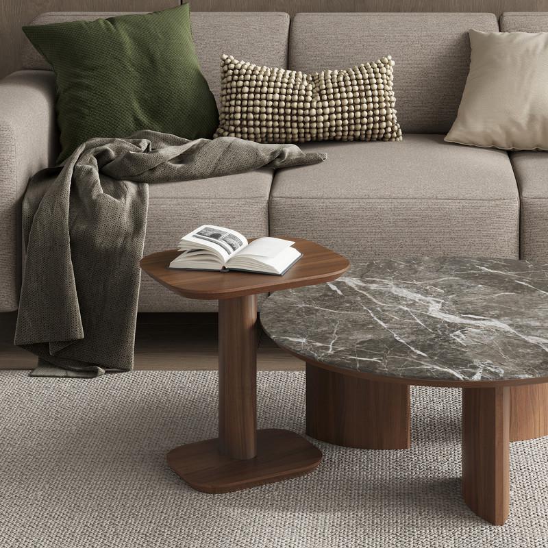 Высокий приставной столик из коллекции Olimar от бренда Mod Interiors в современном стиле. Оригинальная форма столешницы - мягкий прямоугольник - делает стол максимально эргономичным и безопасным. Скошенная столешница и база придают столику еще больше акцентных деталей. Столешница и база выполнены из высококачественного, сертифицированного МДФ высокой плотности. Нога - Массив дерева и МДФ. Отделка – натуральный шпон американского ореха.