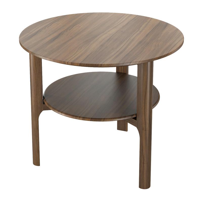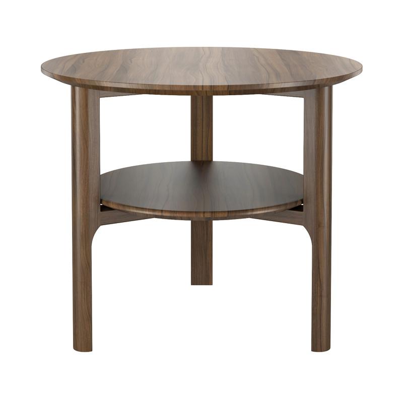 Круглый приставной столик RONDA от бренда MOD Interiros. Столешница и полочка изготовлены из высококачественного МДФ высокой плотности, ножки - из массива дерева. Отделка - натуральный шпон американского ореха. Столик может использоваться не только около дивана или кресла, но и как прикроватная тумбочка в спальне.
