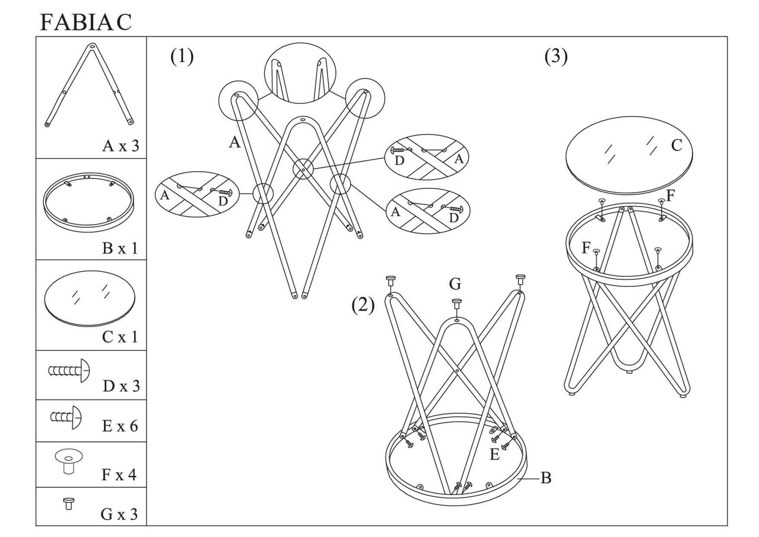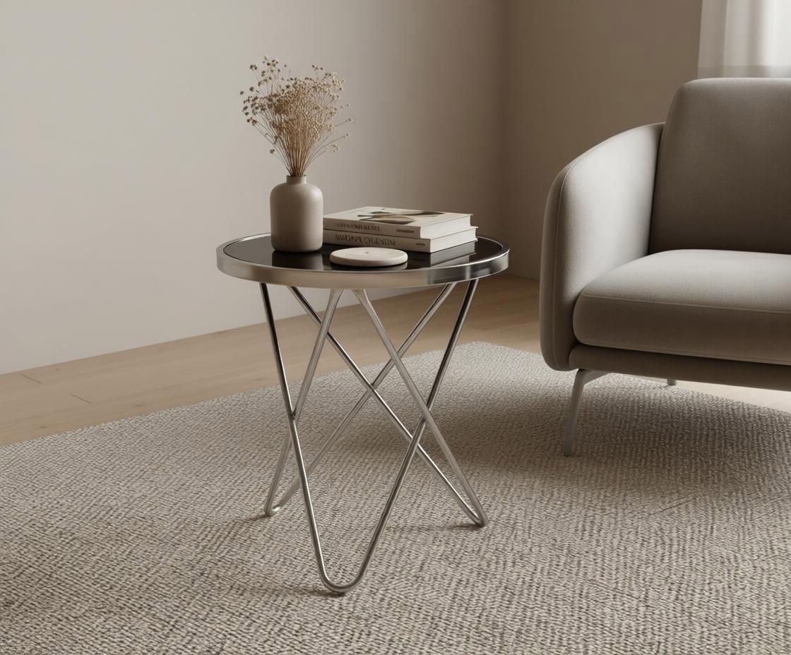 Вес, кг: 4,5 / Высота (см): 50 / Гарантия, мес.: 12 / Глубина (см): 45 / Количество коробок: 1 / Материал каркаса: металл / Материал столешницы: стекло / Необходимость сборки: да / Раздвижной: нет / Размер упаковки 1: 0,47/0,74/0,09 / Страна производитель: Тайвань (Китай) / Форма столешницы: круг / Цвет каркаса: хром / Цвет столешницы: черный / Ширина (см): 45