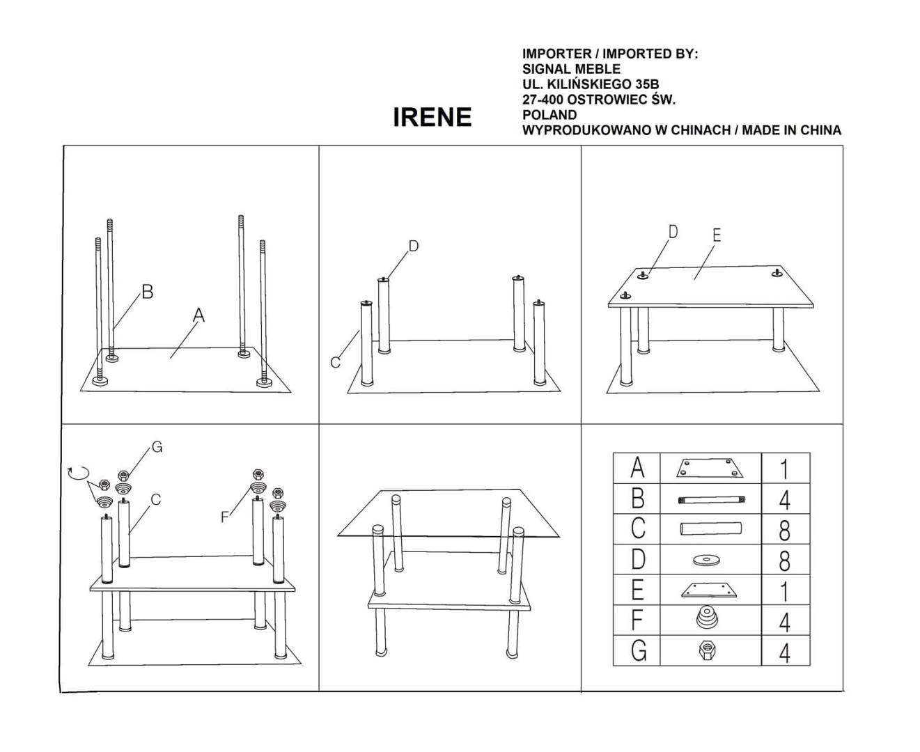 Вес, кг: 10,5 / Высота (см): 45 / Гарантия, мес.: 12 / Глубина (см): 45 / Количество коробок: 2 / Материал каркаса: металл / Материал столешницы: стекло / Необходимость сборки: да / Раздвижной: нет / Размер упаковки 1: 0,47/0,78/0,04 / Размер упаковки 2: 0,095/0,52/0,095 / Страна производитель: Китай / Форма столешницы: прямоугольник / Цвет каркаса: хром / Цвет столешницы: прозрачный / Ширина (см): 75