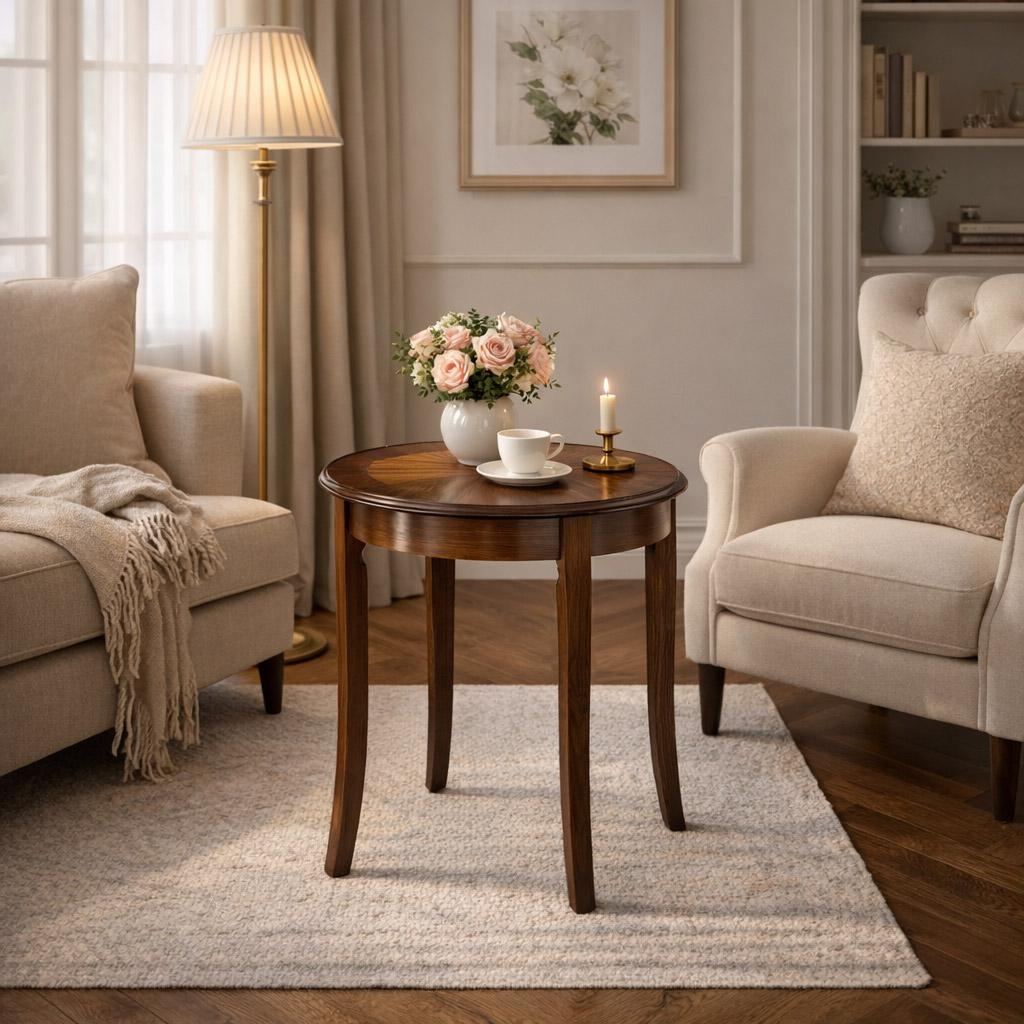 Вес, кг: 8,6 / Высота (см): 55 / Гарантия, мес.: 12 / Глубина (см): 60 / Количество коробок: 1 / Материал каркаса: дерево / Материал столешницы: МДФ / Необходимость сборки: да / Раздвижной: нет / Размер упаковки 1: 0,61/0,75/0,09 / Страна производитель: Малайзия / Форма столешницы: круг / Цвет каркаса: орех / Цвет столешницы: темно-коричневый / Ширина (см): 60