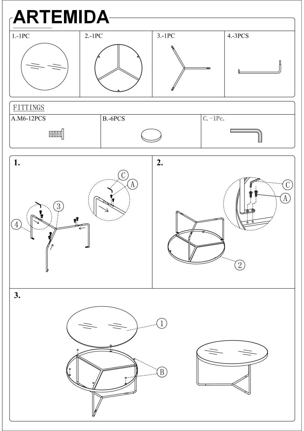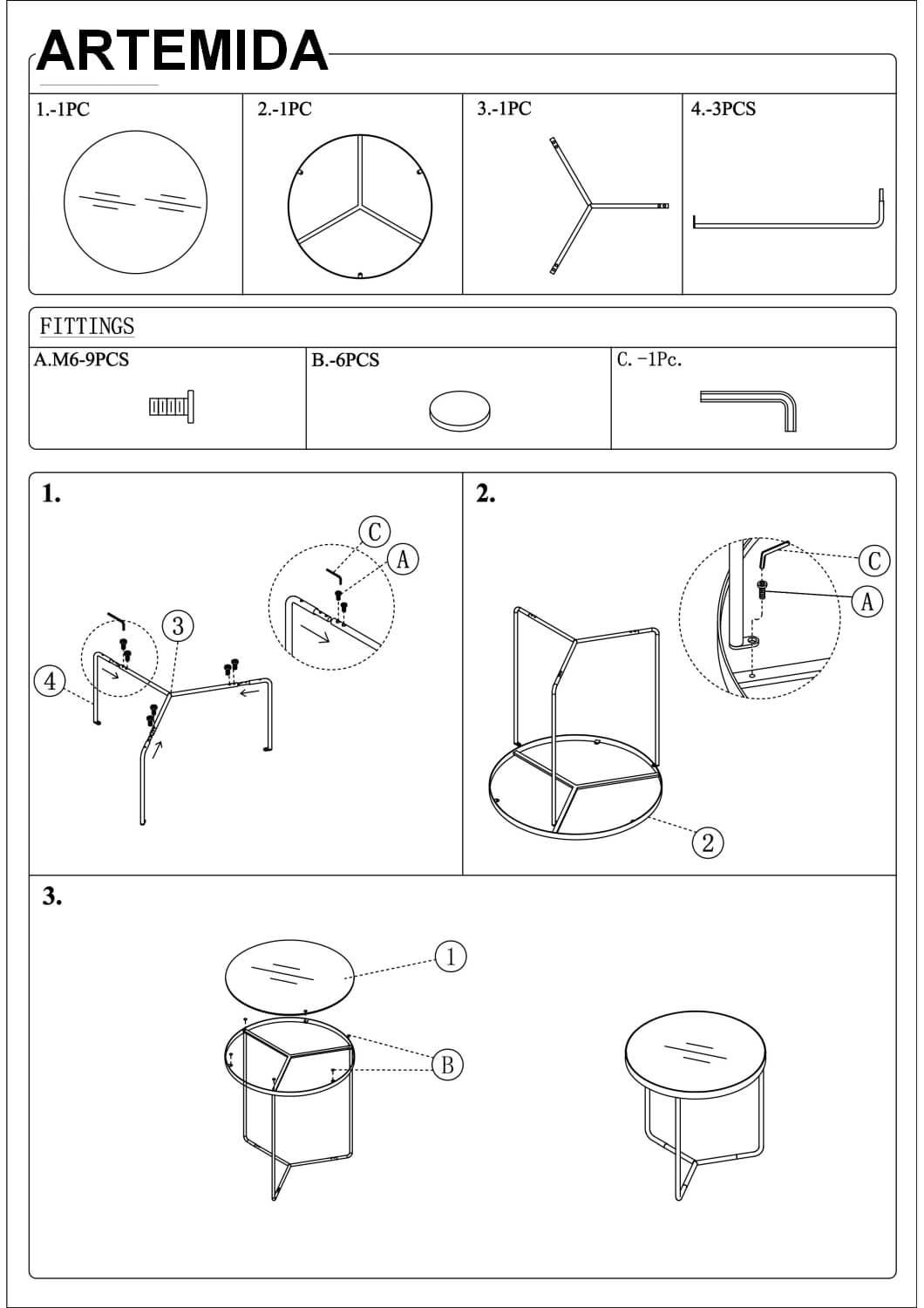 Модель: - ARTEMIDA, 3 стола журнальных (серый/черный)