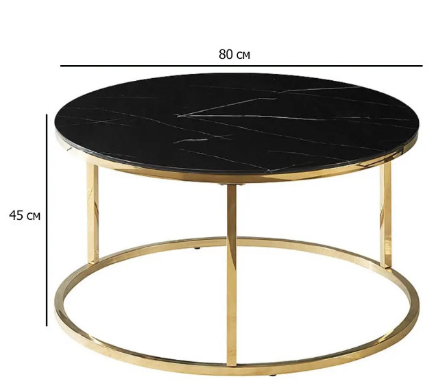 Вес, кг: 13 / Высота (см): 45 / Гарантия, мес.: 12 / Глубина (см): 80 / Количество коробок: 1 / Материал каркаса: металл / Материал столешницы: стекло / Необходимость сборки: да / Раздвижной: нет / Размер упаковки 1: 0,88/0,85/0,095 / Страна производитель: Китай / Форма столешницы: круг / Цвет каркаса: золото / Цвет столешницы: черный / Ширина (см): 80