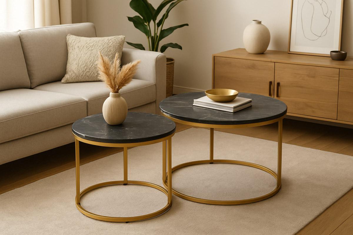 Стол журнальный Signal Комплект Signal DION, 2 стола журнальных (черный мрамор/золотой) арт. DIONCMAZL