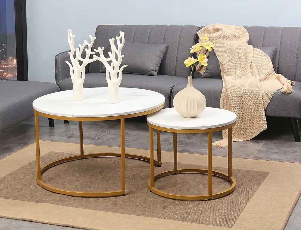 Модель: - DION, 2 стола журнальных (белый мрамор/золотой)