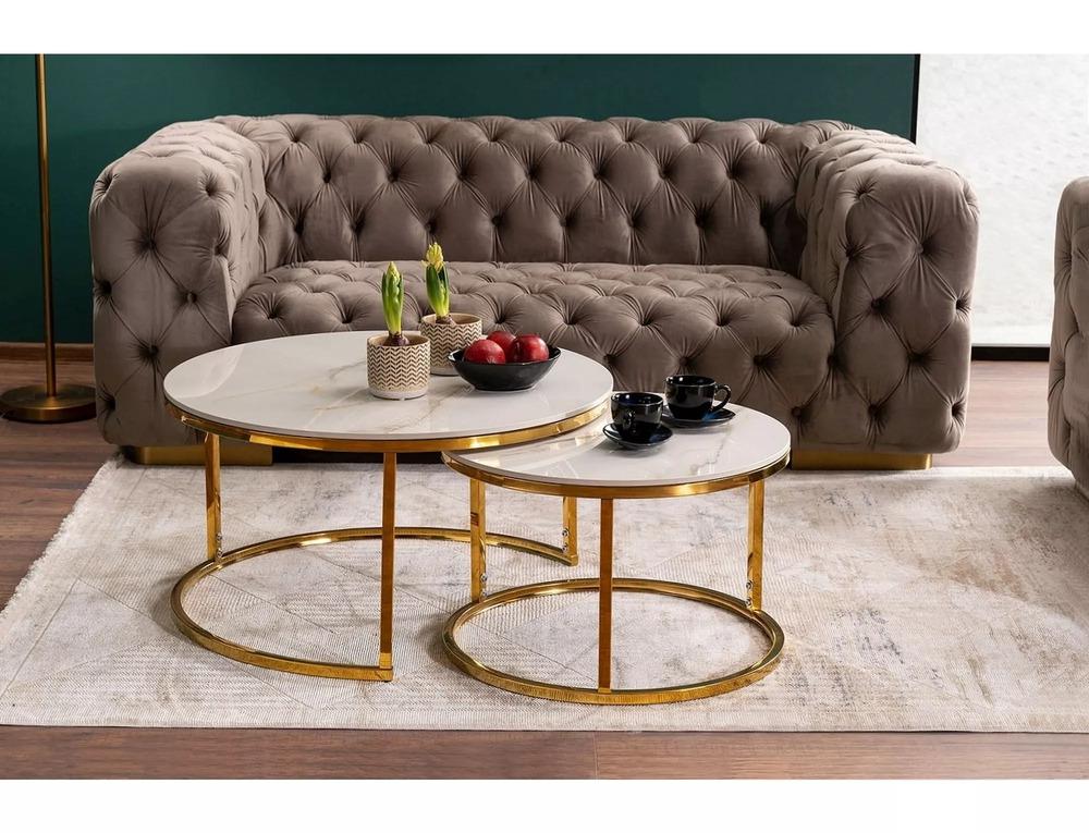 Модель: - PORTAFINO A, 2 стола журнальных (белый/золотой)