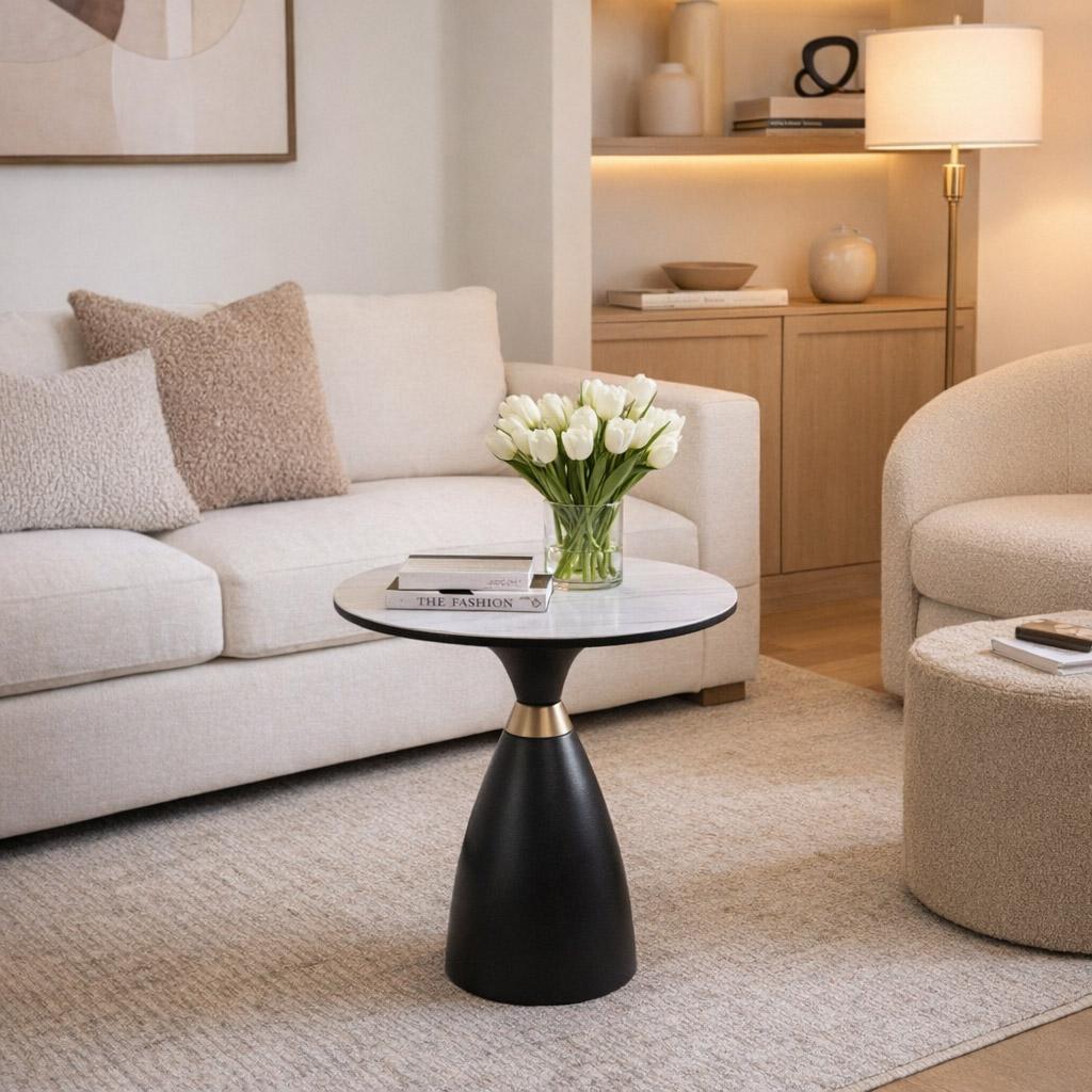 Вес, кг: 10,2 / Высота (см): 56 / Гарантия, мес.: 12 / Глубина (см): 50 / Количество коробок: 1 / Материал каркаса: металл / Материал столешницы: керамика / Необходимость сборки: да / Раздвижной: нет / Размер упаковки 1: 0,55/0,61/0,55 / Страна производитель: Китай / Форма столешницы: круг / Цвет каркаса: черный / Цвет столешницы: белый / Ширина (см): 50