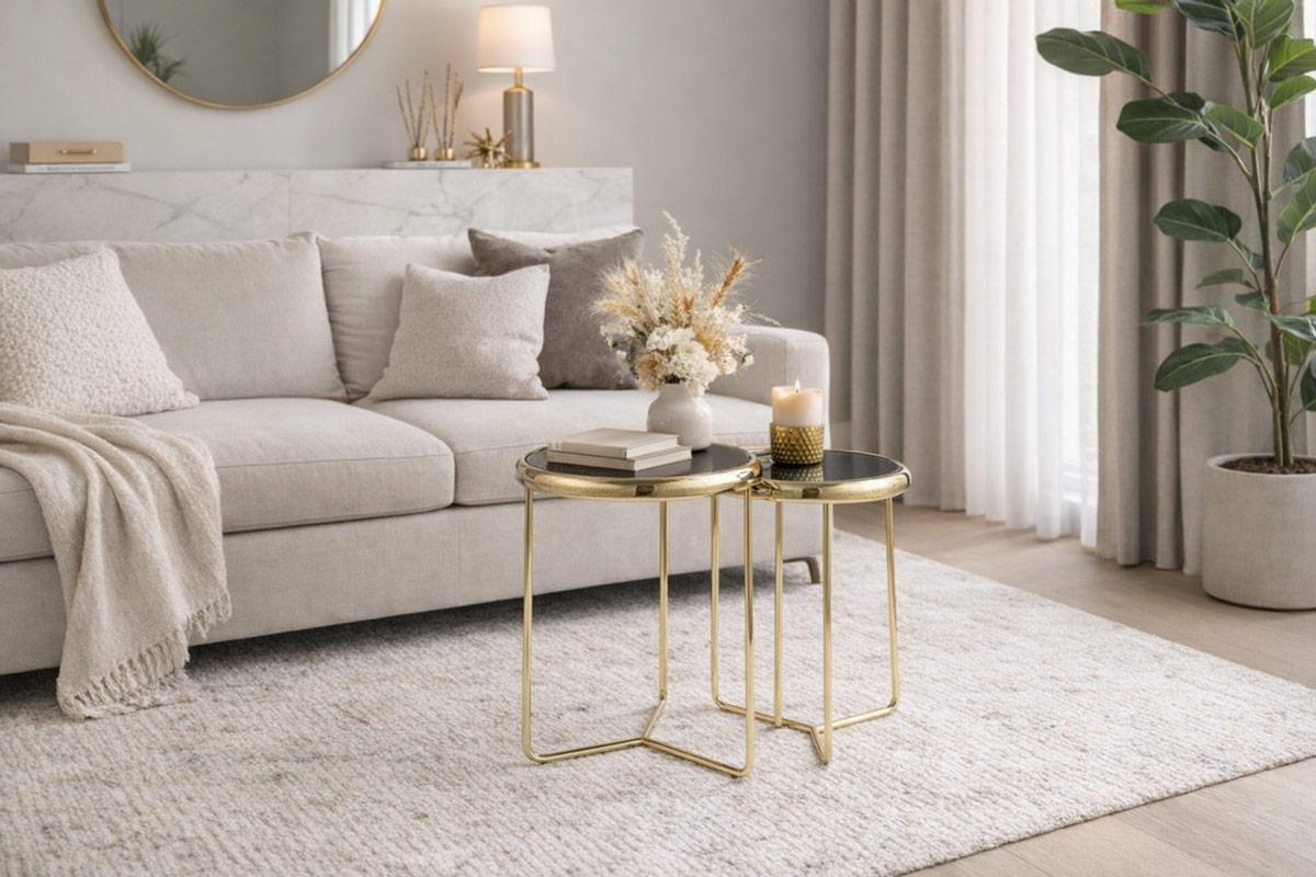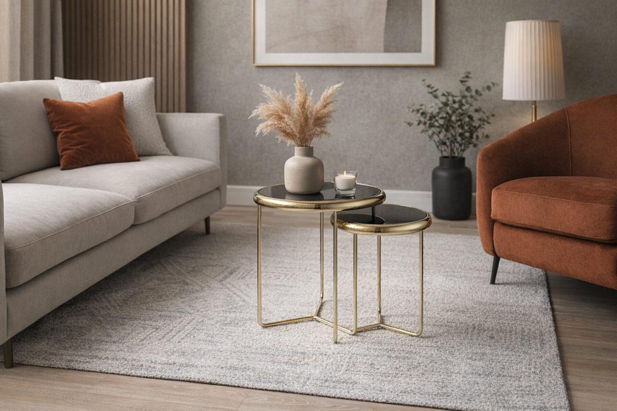 Вес, кг: 6,8 / Высота (см): 50 / Высота 2-о товара в комплекте (см): 45 / Гарантия, мес.: 12 / Глубина (см): 47 / Глубина 2-о товара в комплекте (см): 40 / Количество коробок: 1 / Материал каркаса: металл / Материал столешницы: стекло / Необходимость сборки: да / Раздвижной: нет / Размер упаковки 1: 0,52/0,49/0,11 / Страна производитель: Тайвань (Китай) / Форма столешницы: круг / Цвет каркаса: золото / Цвет столешницы: черный / Ширина (см): 47 / Ширина 2-о товара в комплекте (см): 40
