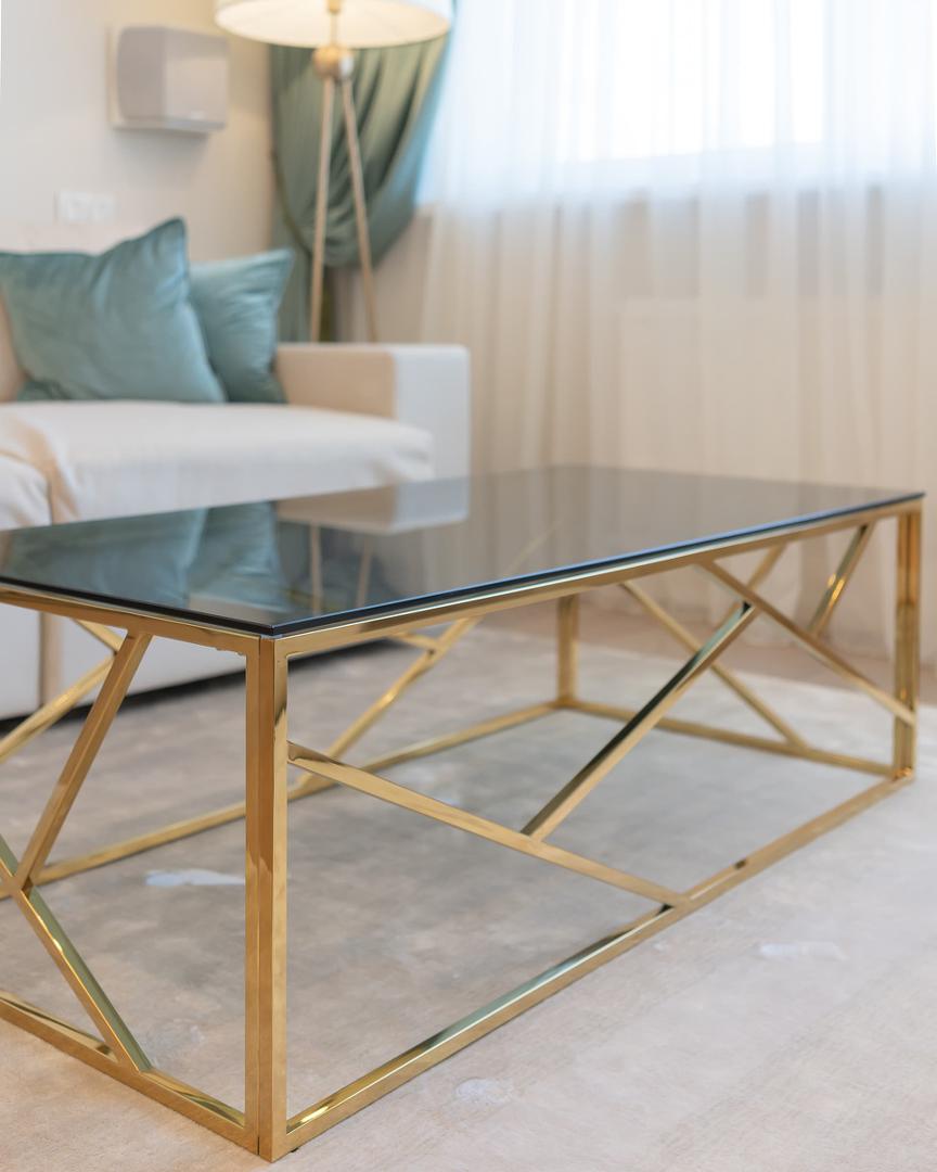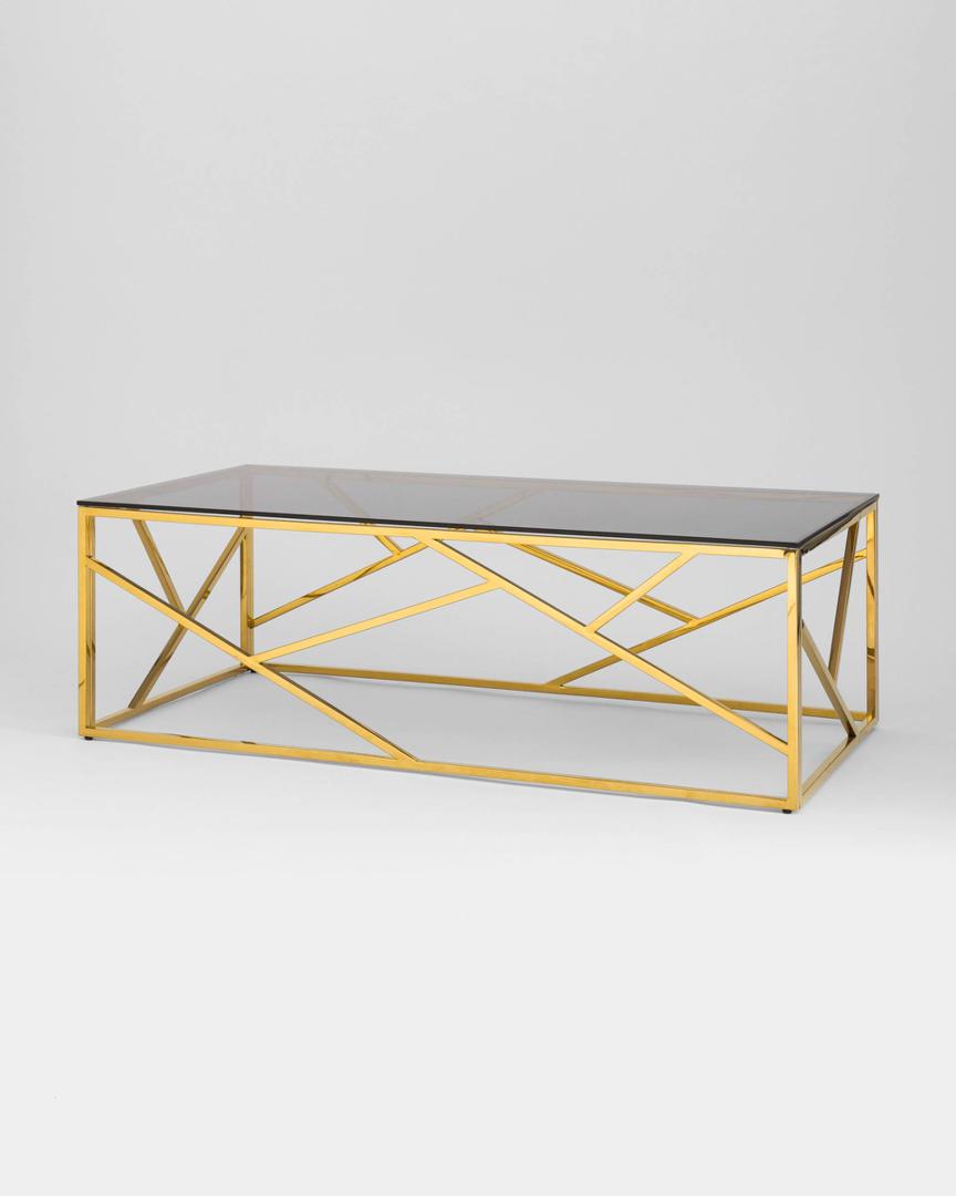 Стол журнальный 120*60 АРТ ДЕКО золото стекло smoke каркас нержавеющая сталь