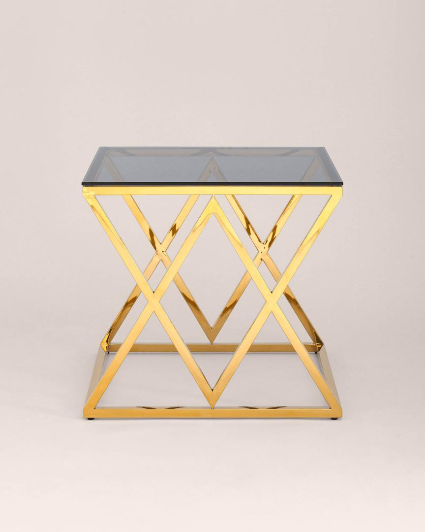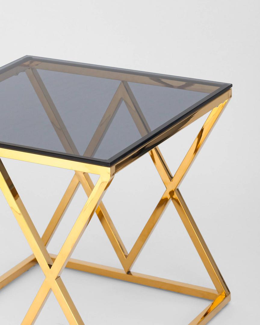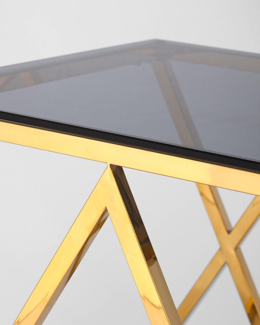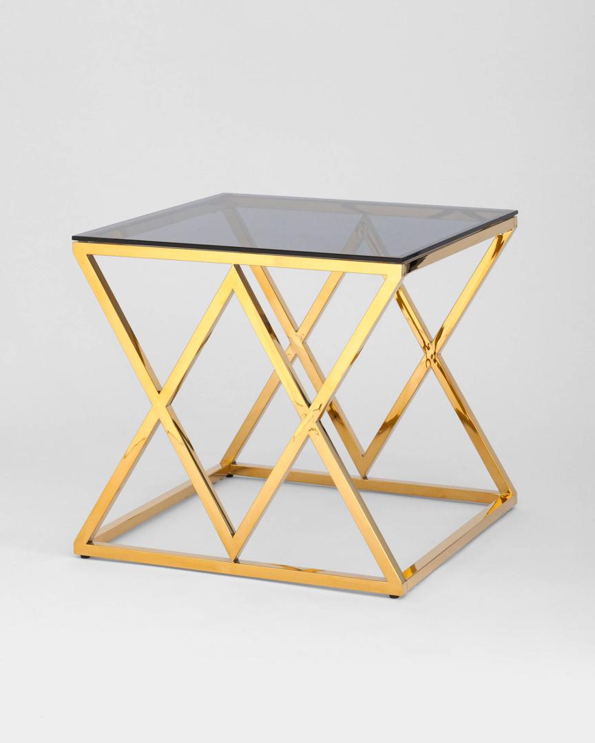 Стол Stool Group журнальный 55*55 ИНСИГНИЯ золото стекло smoke, каркас нержавеющая сталь, столешница закаленное стекло