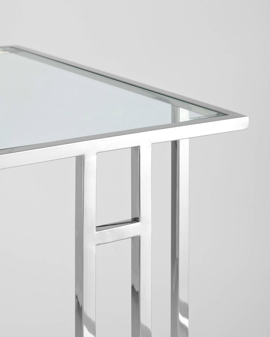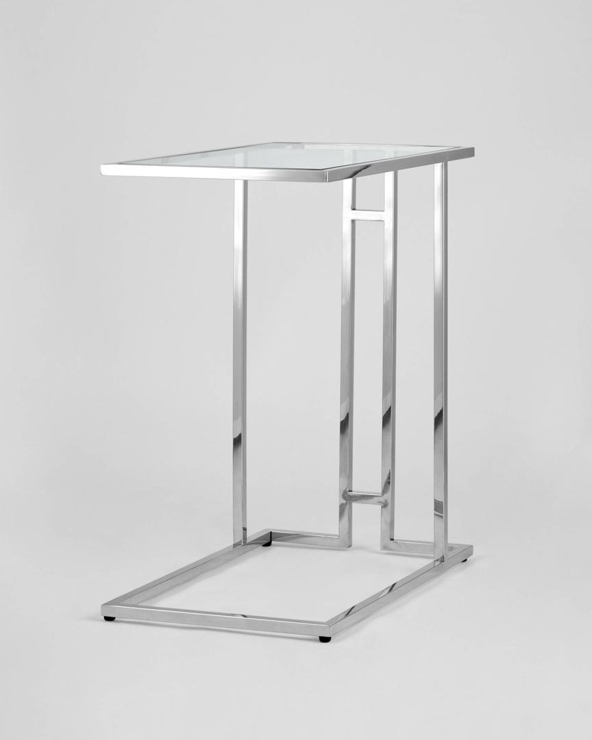 Стол журнальный Бостон 50*32 каркас из нержавеющей стали серебро стекло прозрачное
