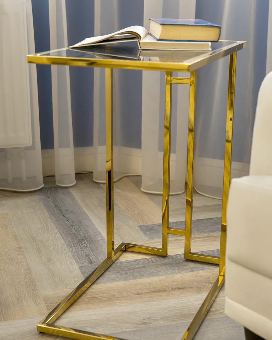 Стол журнальный Бостон 50*32 каркас из нержавеющей стали золото стекло smoke