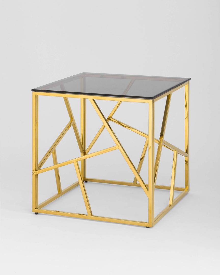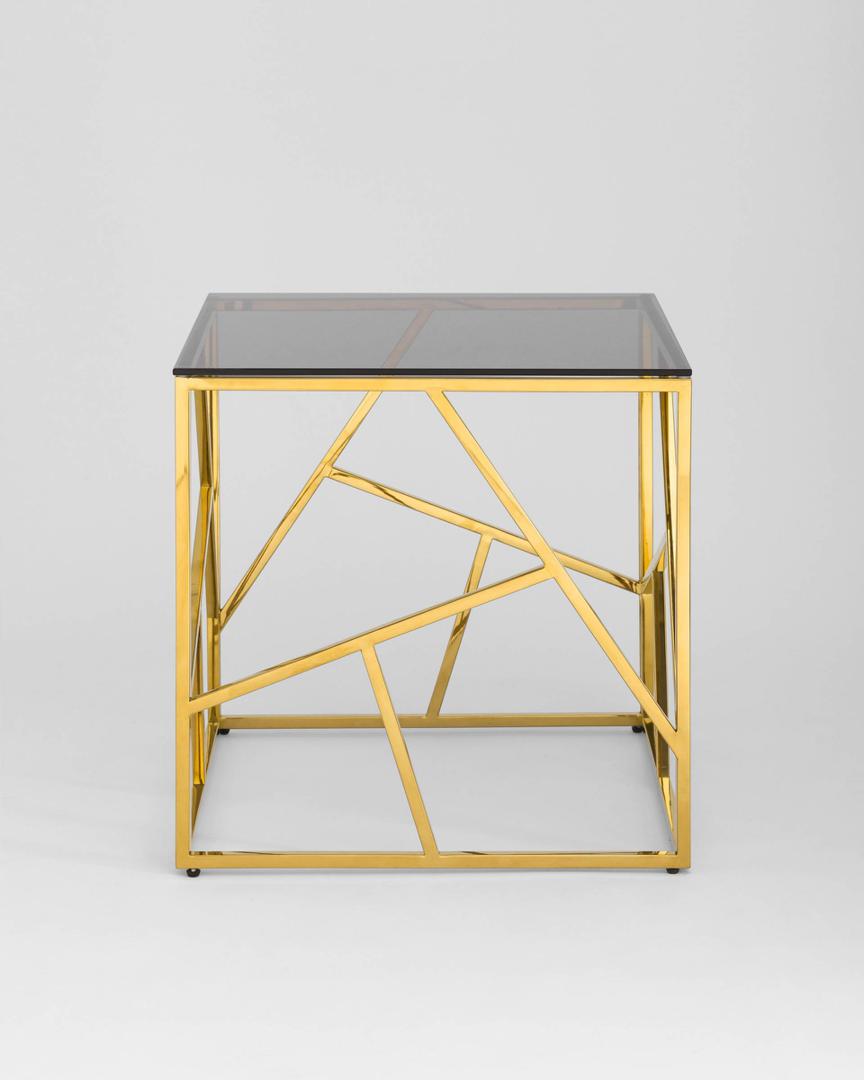 Стол Stool Group 55*55 АРТ ДЕКО золото стекло smoke, каркас нержавеющая сталь, столешница закаленное стекло